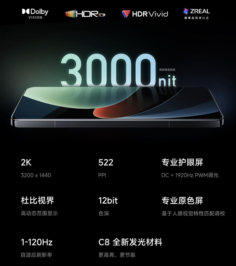 - 6.73 inch độ phân giải 3KHD 1440 x 3200 pixels, 20:9 ratio (~522 ppi density)